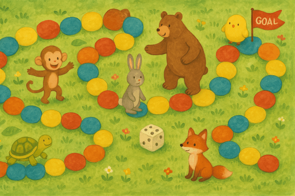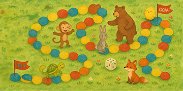 ・一般的な『すごろく』の画像がなかなか手に入らないため、改めてChatGPTにプロンプトを入力し、イメージしていたものに近い画像が生成され、その画像を改めてPhotoshopで修正し準備できました。